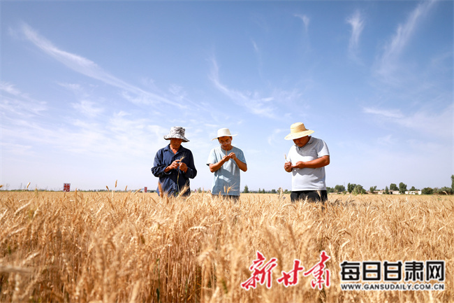 “我们这个示范点今年种植小麦1000余亩,颗粒光泽饱满,预计亩产可达520公斤。最近天气比较好,适宜小麦机械化收割,这些小麦两天就可以收割完。”金塔县东坝镇小河口村党支部书记、村委会主任赵成兵说。