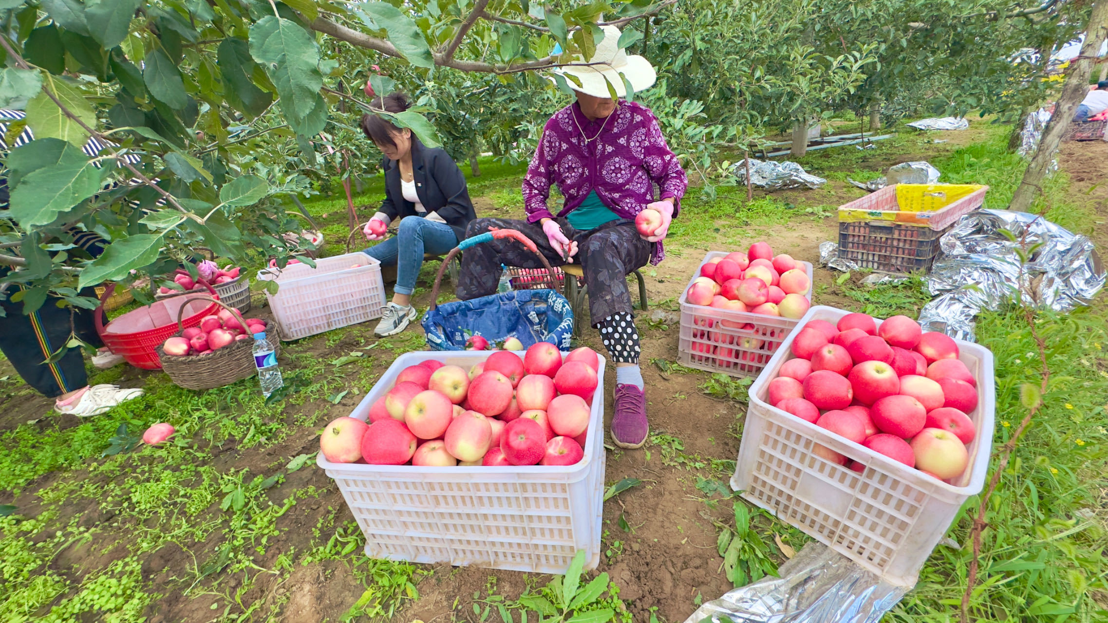 初秋时节,天气晴好,泾川县高平镇早熟苹果挂满枝头,走进泾川县高平镇袁家城村苹果园,一个个红彤彤的苹果挂满了枝头,微风拂过,阵阵果香漫过鼻尖、飘向四处,满园清香!让人垂涎欲滴,果农们正抢抓晴好天气忙着采摘成熟的嘎啦苹果。