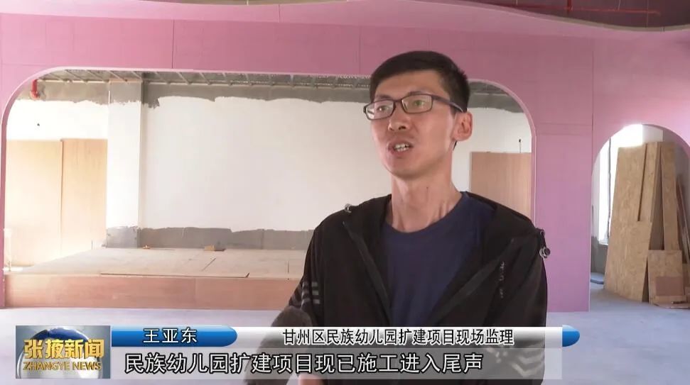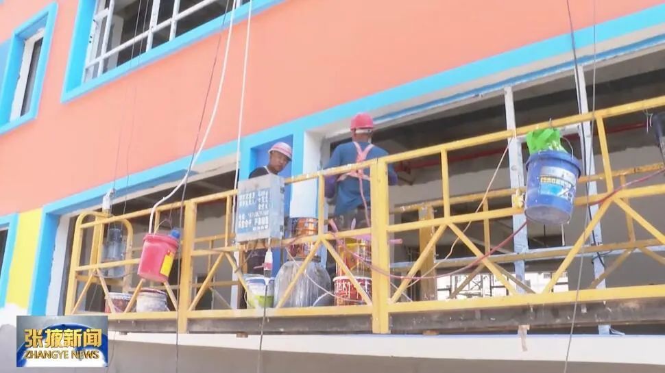 在甘州区民族幼儿园扩建项目现场,同样是一派繁忙景象,工人正在进行外墙粉刷、室内装修等工作。该项目新建教学楼设置9个教学班,新增360个园位,计划总投资2089万元。