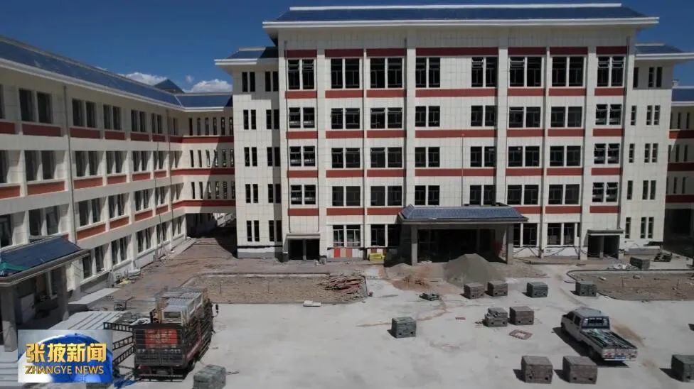 在张掖市第三中学项目建设现场,项目主体工程基本完工,工人们正在进行室内装修及配套设施安装等工作。
