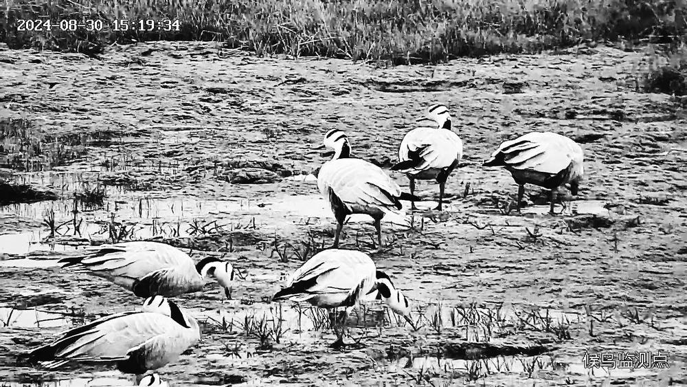 保护区鸟类监测站工作人员介绍,通过野外监控系统和野外巡护记录确定,此次有50多只斑头雁迁徙至阳关渥洼池湿地休整。
