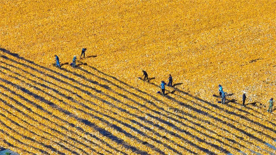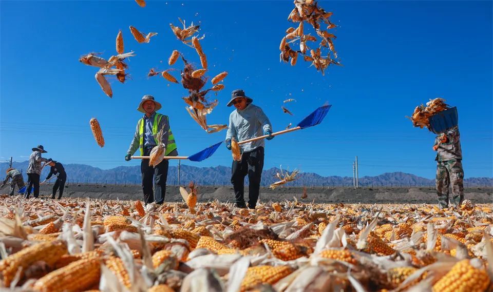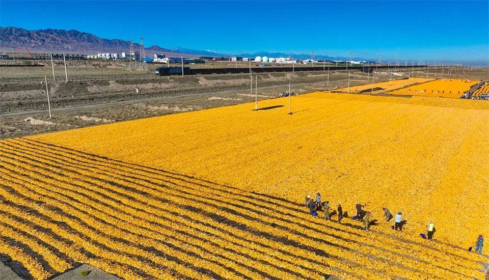 9月6日,在张掖市高台县南华工业园区5000余平方米的晾晒区内,制种企业的近百名工作人员正在抢抓天气放晴有利时间,加紧晾晒制种玉米。今年,全县制种玉米面积10万亩,预计生产优质种子4500万公斤以上,实现产值6亿多元。
