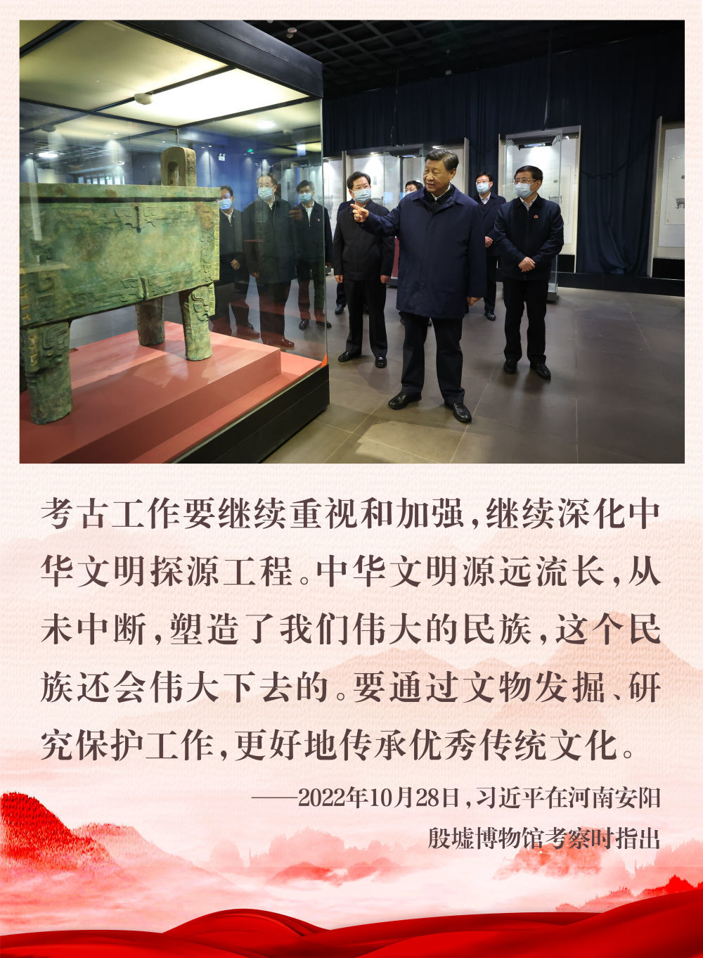 “我们的文化自信就是从真正能证明我们的久远历史中来”“中华文明源远流长,从未中断,塑造了我们伟大的民族,这个民族还会伟大下去的”。
