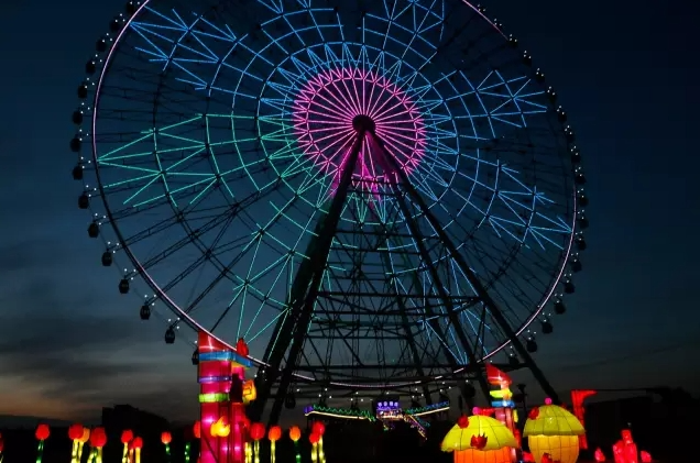 武威摩天轮高度128米,拥有观光吊舱60个,可同时容纳360位游客观光体验。居世界第九,中国第五。