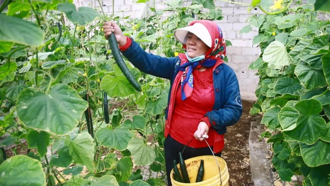 朵朵黄花点缀枝头,翠绿黄瓜挂满藤蔓。这几日,瓜州县广至藏族乡岷县村的蔬菜种植户蔡满霞一直忙着采摘黄瓜,脸上洋溢着丰收的喜悦。