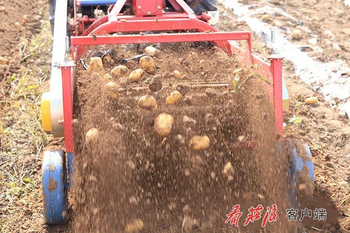 沿着轰隆隆的机械声来到鱼咀村千亩马铃薯采挖基地,正是实施改造过的高标准农田区域,人头攒动,机械来回穿梭,3800亩马铃薯正有条不紊地进行采挖、分拣和打包装车,所有人脸上都洋溢着丰收的喜悦。