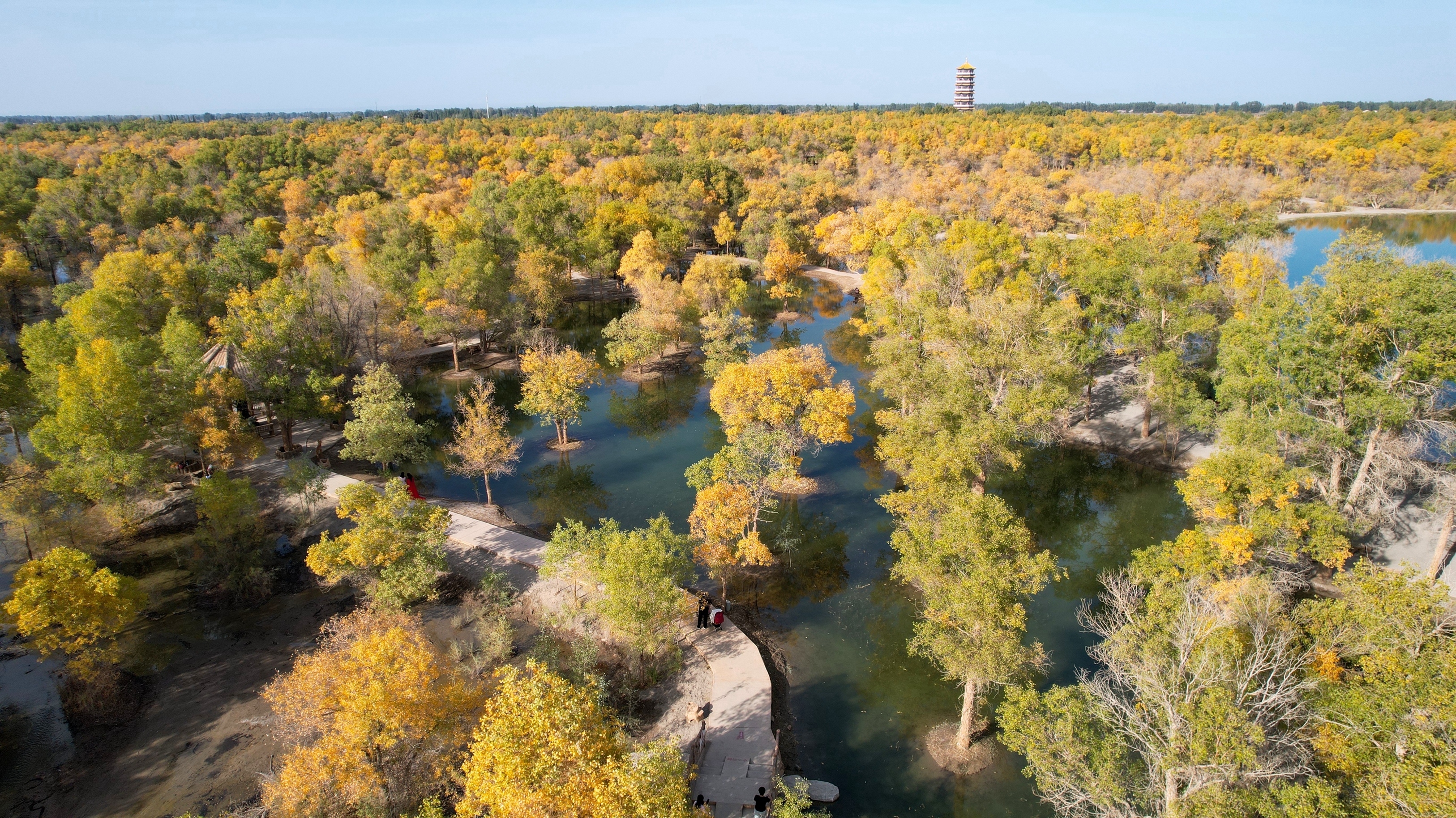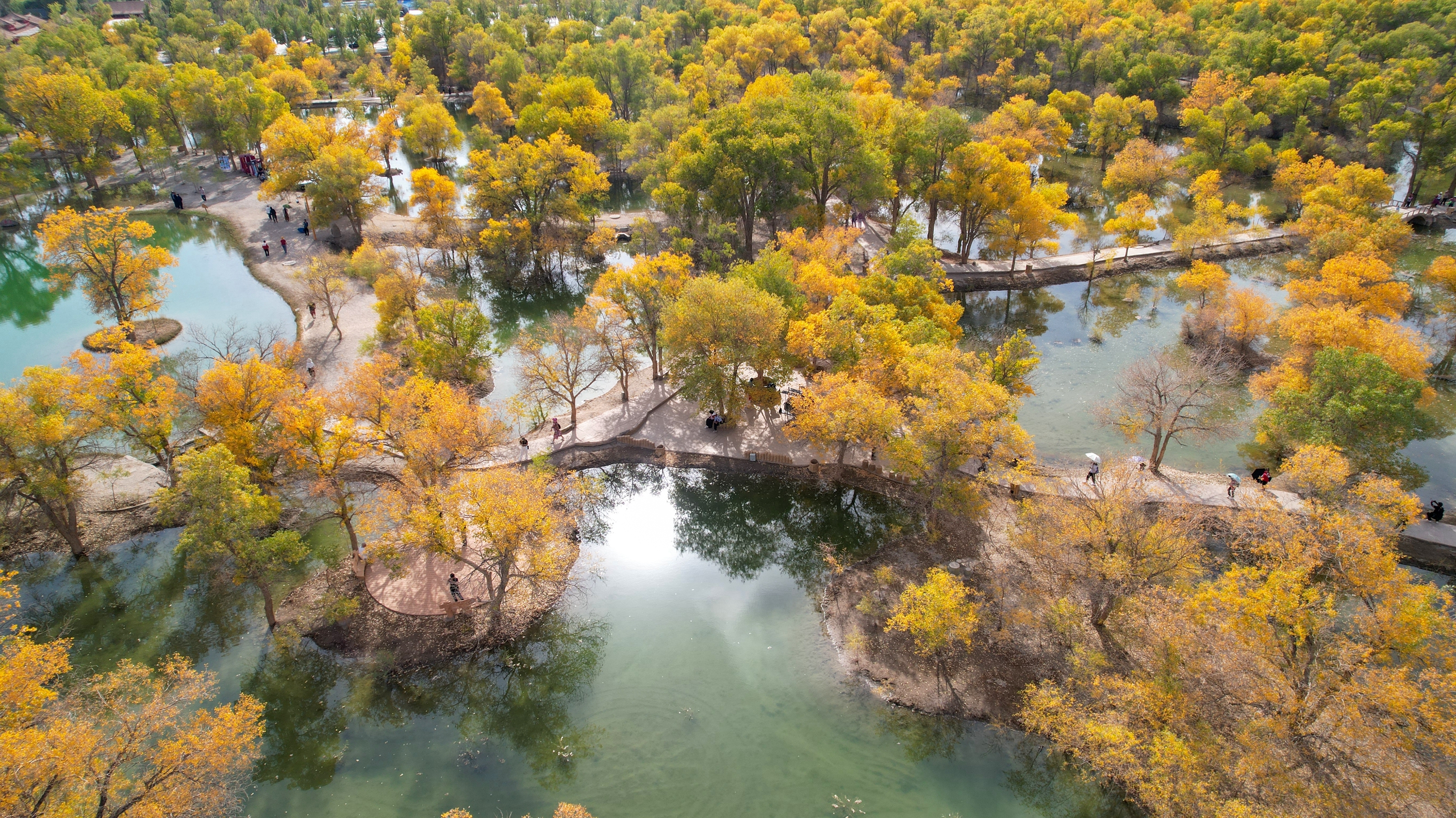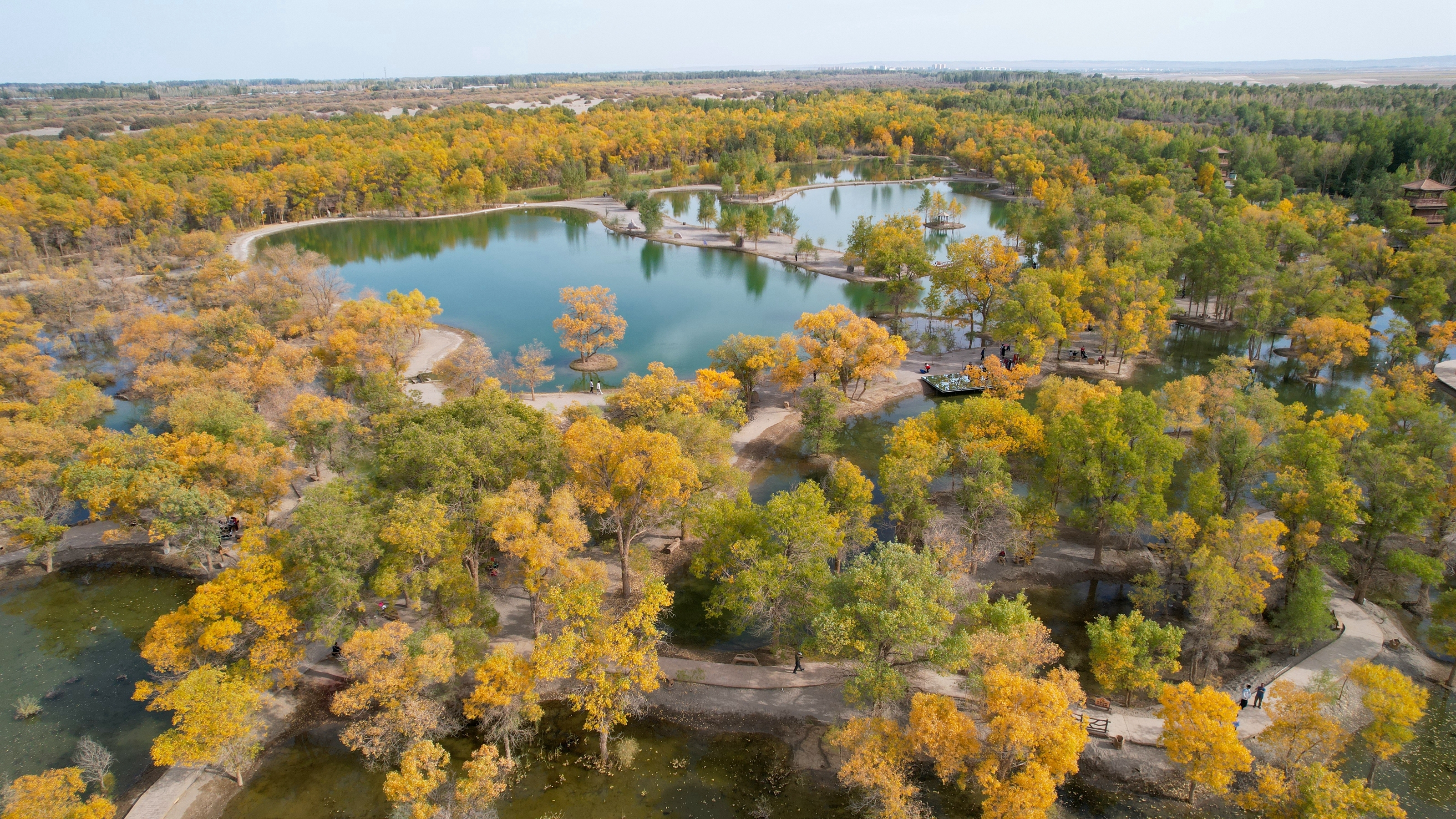 原标题:秋日限定!甘肃金塔万亩胡杨林“换金装”