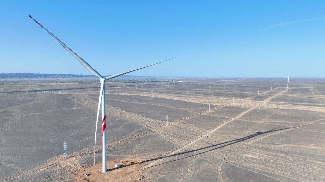 一座座风机随风律动,一片片蓝色光板在阳光下“熠熠生辉”。在甘肃瓜州8万千瓦新风机试验场项目现场,新建单机容量8.34兆瓦的风机拔地而起,该风机是甘肃省单机容量最大的风电机组,目前风电机组整机系统已经全部实现了国产化。