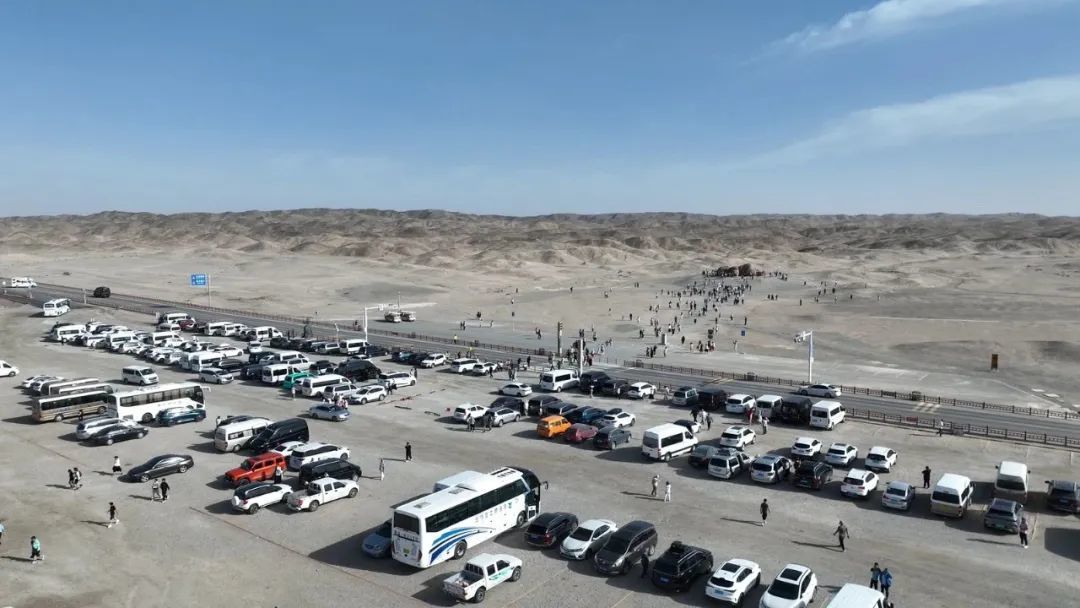 秋风习习,碧空如洗。在瓜州县旅游热门“打卡地”戈壁国际雕塑艺术长廊,停车场内车辆川流不息,游客们纷纷拿起手机相机拍照留念,尽情享受这份难得的悠闲。