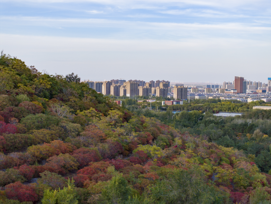 金昌市植物园里,千姿百态的菊花争奇斗艳,竞相开放,有的像一个个绒球,有的像炸开的礼花,有的像少女的卷发……美丽的月季花,红的像火,金的赛光,白的如雪,粉的似霞,绚丽多彩,美不胜收。