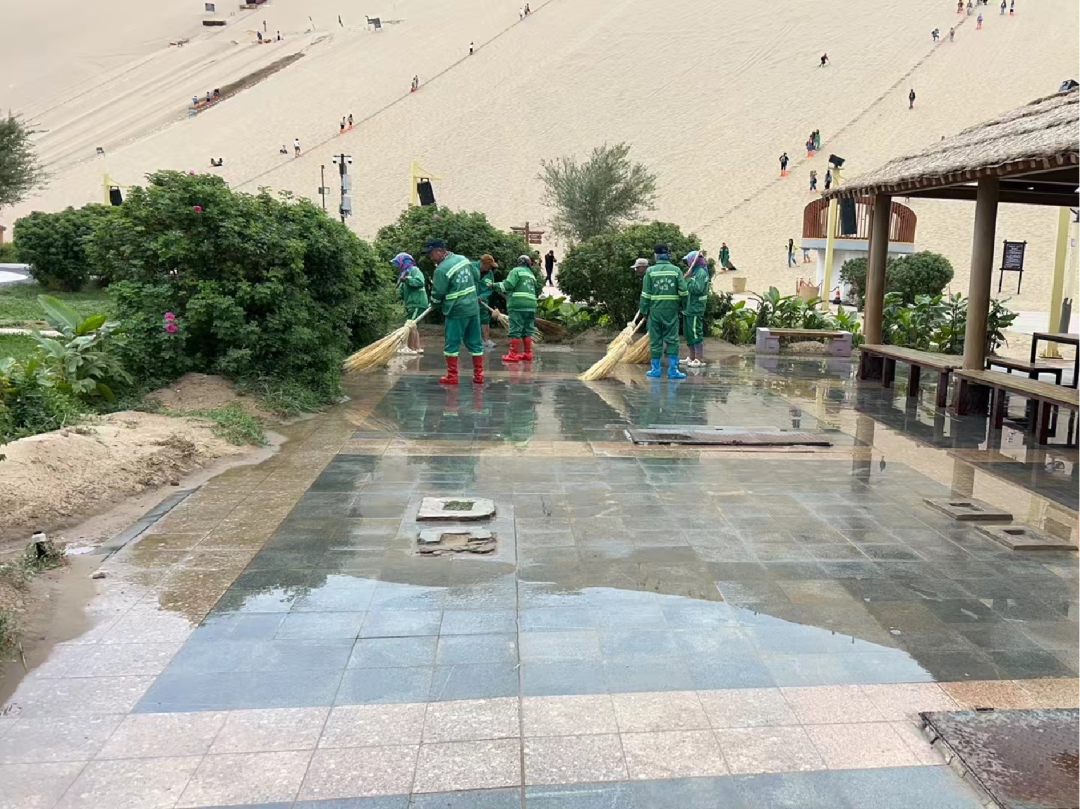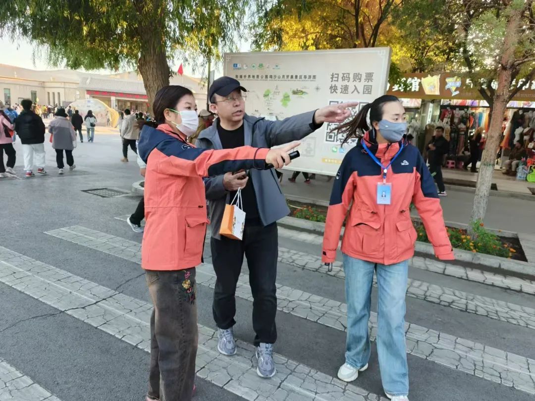 景区坚持“以游客为中心”的服务理念,在旅游高峰期,通过发送落地温馨短信、申请120急救车常驻、采购应急电源、创新保洁方式、增设防晒喷雾、冷风机、水循环风扇、游客洗脚设备及夜间警示标语等便民设施,为游客带来舒适体验。旅游旺季及每个节假日,景区全员在岗,加班加点,为游客提供找人找物、咨询指引、紧急救助等全方位服务。