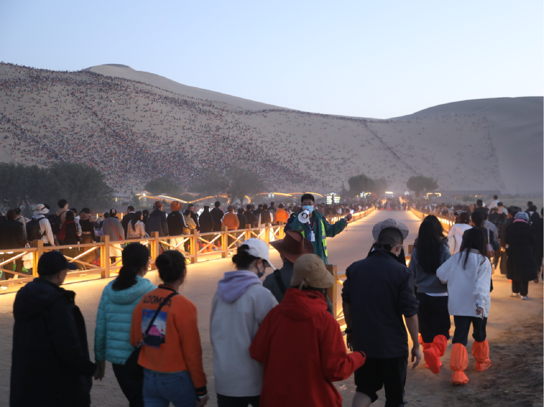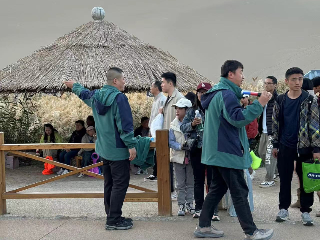 2024年10月12日,鸣沙山月牙泉景区游客接待量突破400万,较去年同期增长30%,达到历史新高!在如此大的客流之下,景区严格执行服务标准、不断提升服务水平、完善安全秩序保障,营造旅游新场景,赢得了游客普遍好评和赞誉。