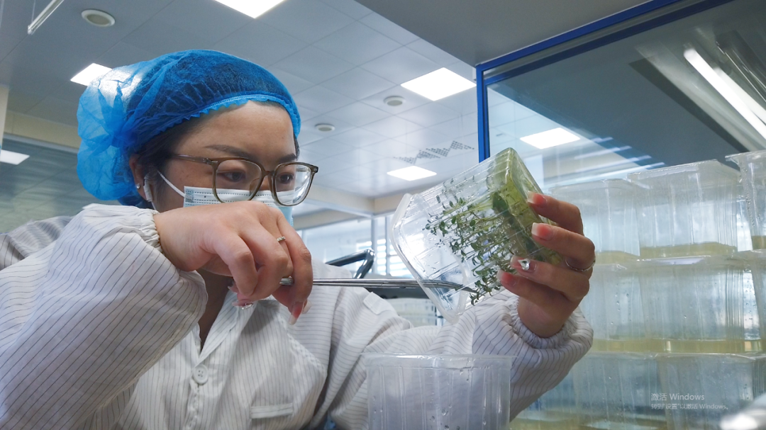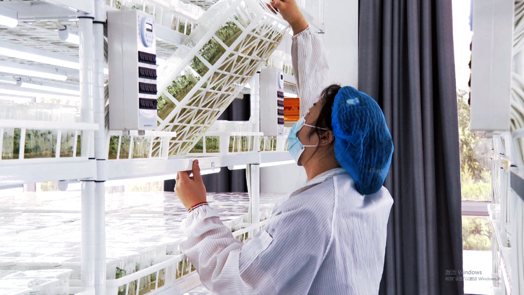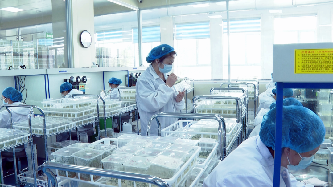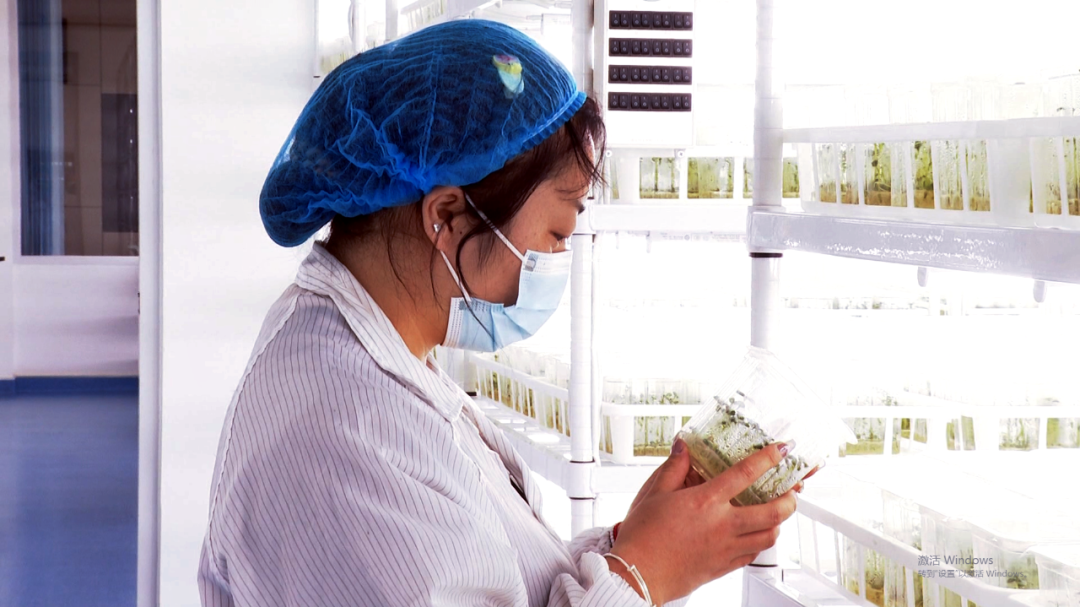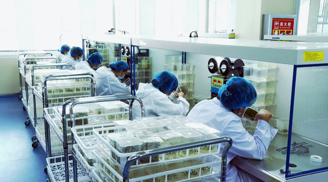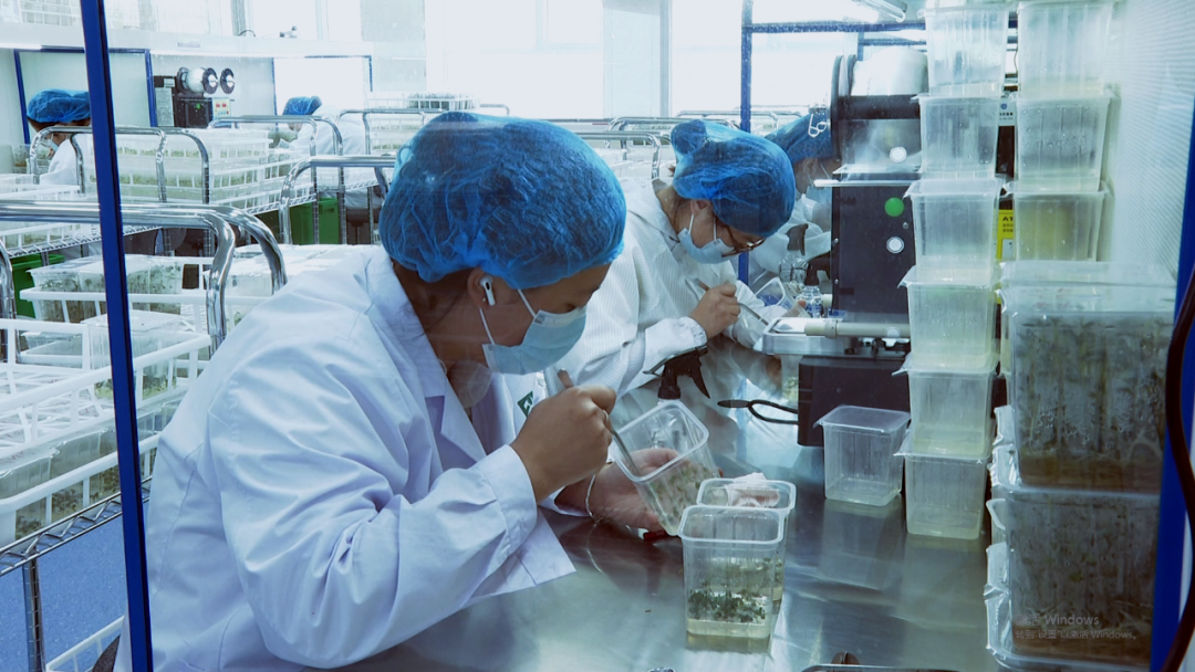 10月12日,民乐县马铃薯脱毒种薯繁育中心接种室,操作台前的技术人员“全副武装”,对盒苗进行茎尖剥离脱毒操作。