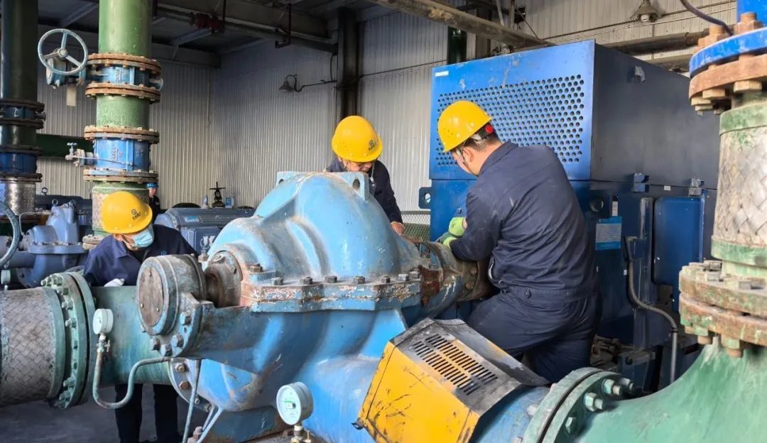 在瓜州县热力有限公司第一热源厂,工作人员有序进行供热设施的检修维护,及时排除隐患,保证供热设施设备完好安全运行。