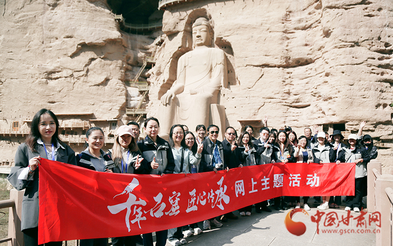 10月15日,由中央网信办网络传播局指导,甘肃省委网信办、甘肃省文物局主办,中国甘肃网、快手甘肃承办的“千年石窟 匠心传承”网上主题活动来到炳灵寺石窟,来自中央及省市县各级网络媒体记者、商业平台编辑、网络名人等组成的采访团走近洞窟群与守护者,近距离感知石窟艺术、全方位了解文化遗产保护,续写甘肃石窟故事。