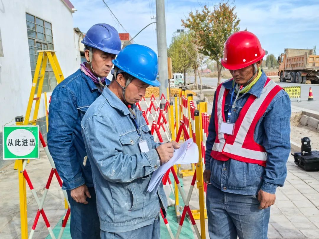 在瓜州县腰站子镇农村电网巩固提升工程施工现场,工作人员正井然有序开展进户线安装、电表迁移等工作,推动配网供电质量再优化、再提升。