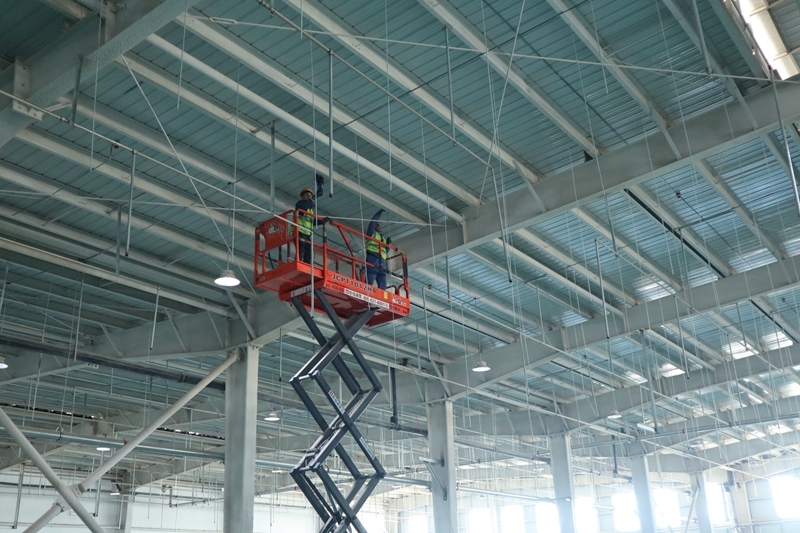 11月5日,走进位于临泽县扎尔墩工业集中区的易事特年产2GWh新型储能装备制造综合示范项目二期施工现场,自行液压剪叉式升降机在储能厂房内来回穿梭,工人正忙着制作通风管道和安装地面建筑设施,抓工期、抢进度,确保项目早落地。