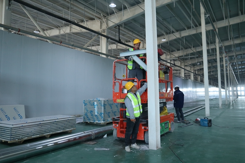 “二期工程已于2024年10月22日开工建设,目前车间正在进行二期生产线的净化车间的安装,已完成地坪漆的底层涂漆以及净化车间吊顶工作,预计11月30日以前完成净化车间的安装,12月底完成设备的导入安装等。”易事特(张掖)储能技术有限公司总经理鞠小亮说。