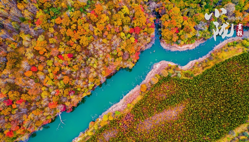 金黄、深红、葱绿……深秋十月,高天厚土的庆阳华池,天空湛蓝,塬上岭下,田野山峁,霜叶五彩,景色明艳动人。