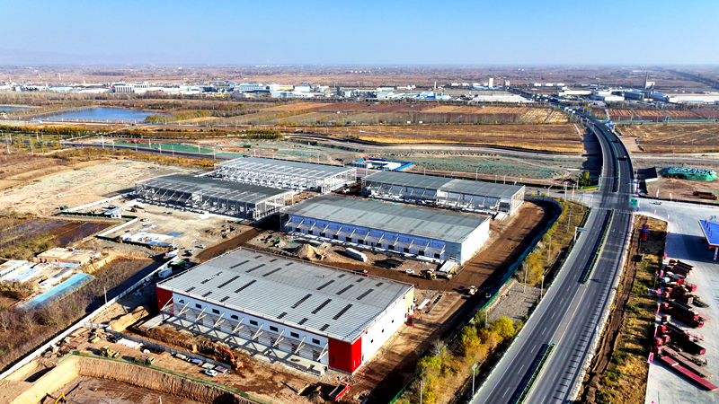“项目于2024年5月初开工建设,经过半年的施工建设,现在已完成投资约8500万元。目前进展最快的2号仓和3号仓正在进行室内外墙面板的铺设工作,预计11月底铺设完成并投入使用。”张掖(丹霞)京东5G零碳智能物流产业园项目技术总工李天琦介绍道。