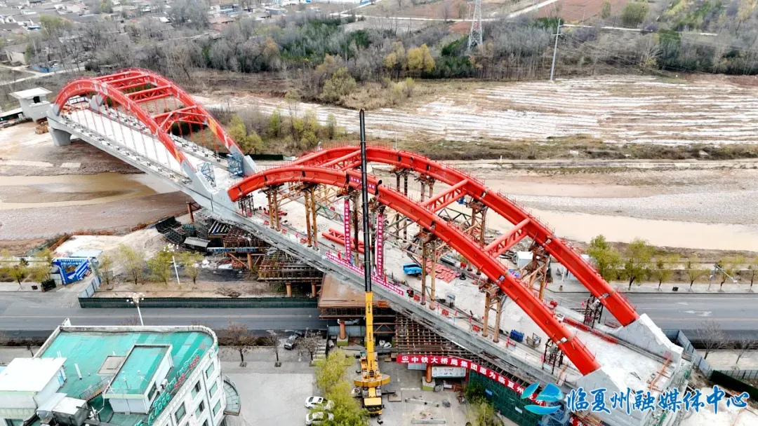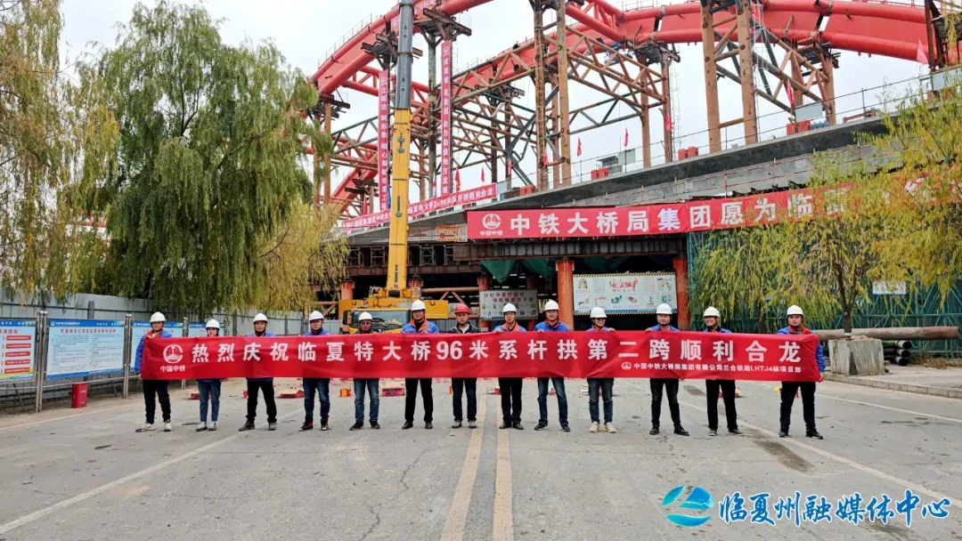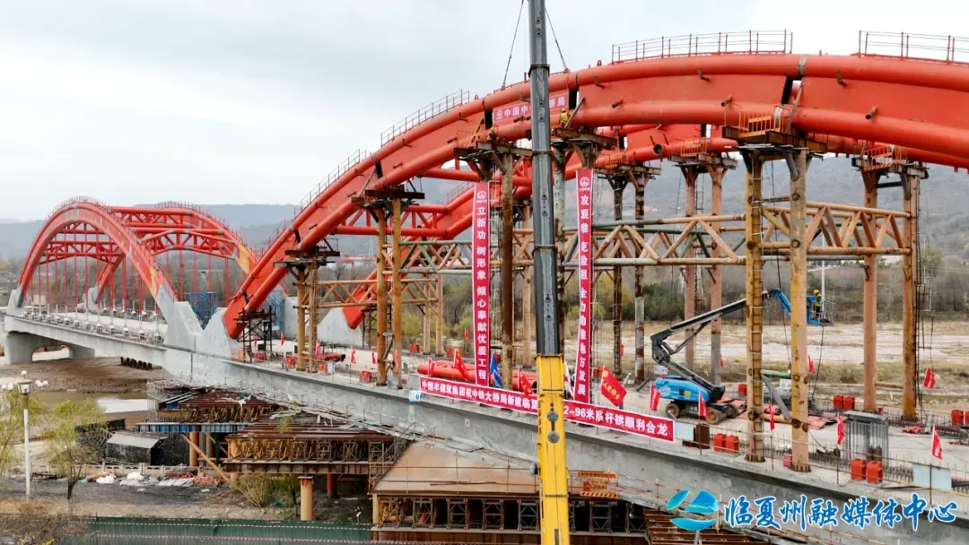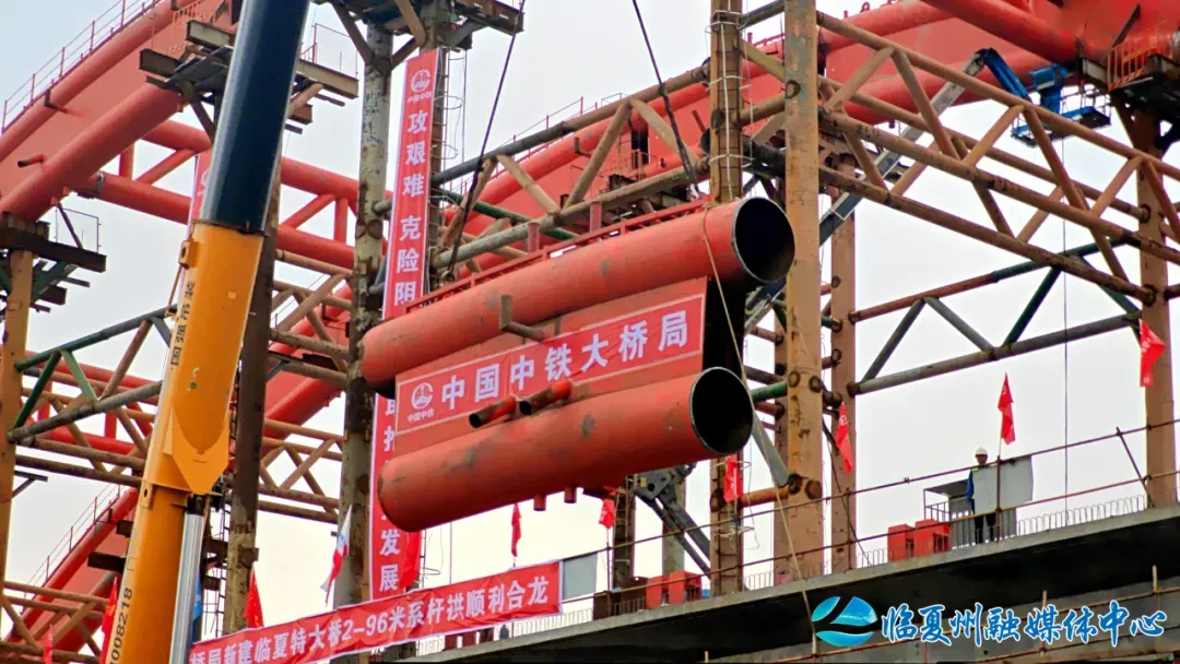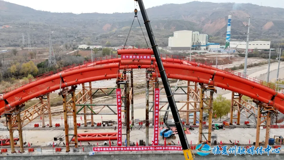 临夏特大桥位于临夏市南龙镇王闵家村,是兰合铁路本标段重难点控制性工程。特大桥全长2007米,主桥长198米,包含2座96米系杆拱桥。其中,第一座96米系杆拱已于去年年底完成施工,此次第二座的成功合龙标志着工程建设又迈出关键一步。后续将进行拱肋混凝土压注,在混凝土强度达标后,依次开展吊杆安装、张拉及体系转换等工序,并拆除支架,预计今年年底完成系杆拱桥全部施工,为明年架梁作业创造有利条件。