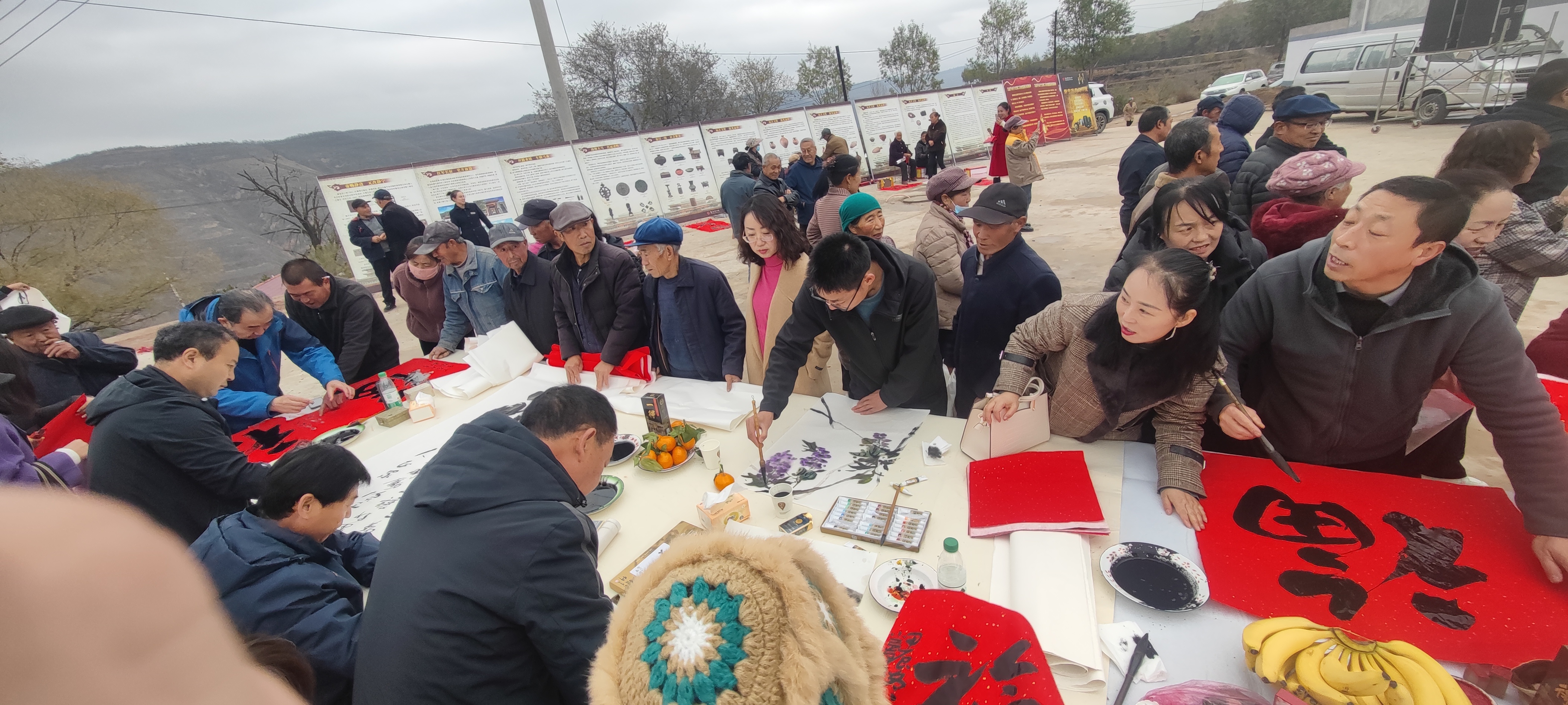 现场演艺人员为搬迁群众带来了多场秦腔戏曲表演,演员们凭借精湛的演技、生动的表情和优美的唱腔,为搬迁群众呈现了一场场视听盛宴;书法家们应景应情,为搬迁群众现场书写对联、写福字,一副副对联,一个个福字饱含着对群众们满满的祝福。