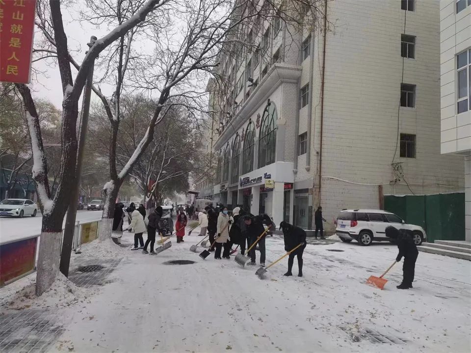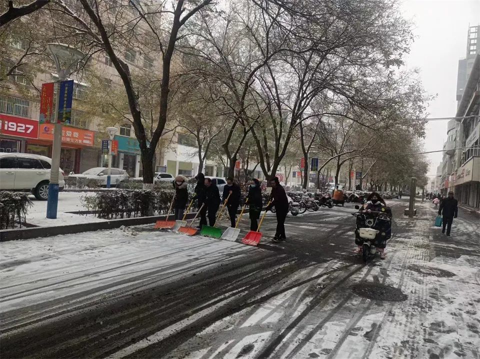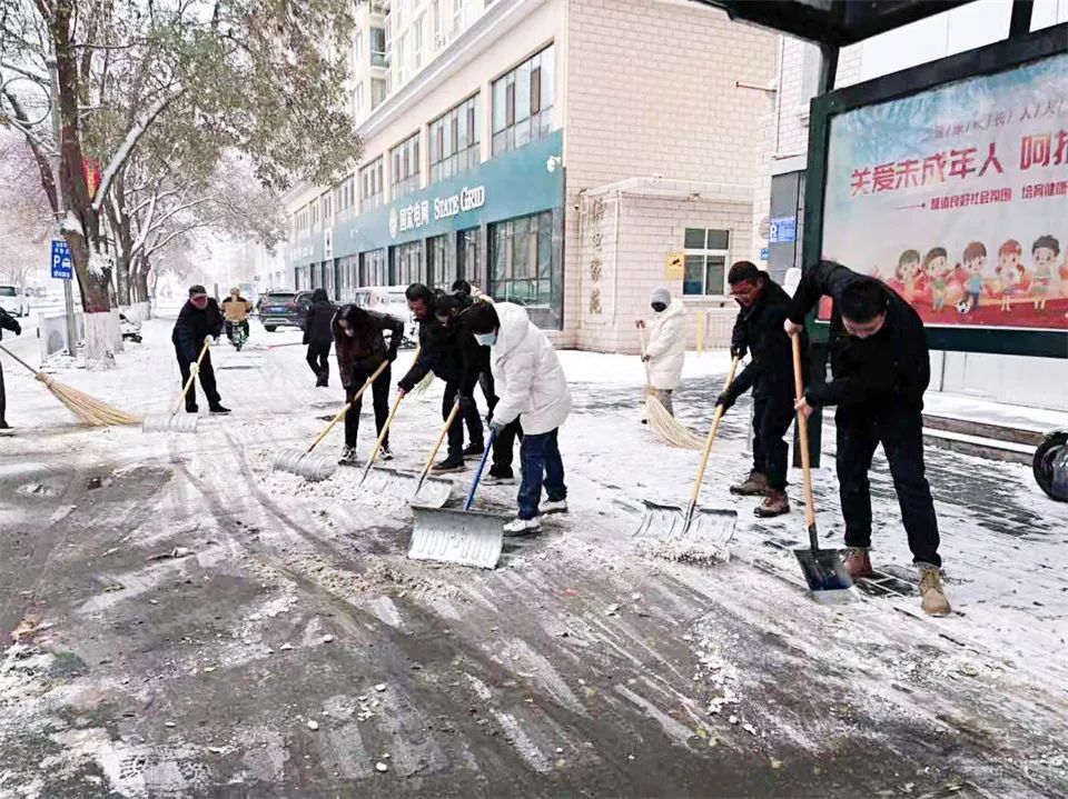 24日上午,大地银装素裹。各部门、单位广大干部职工以“雪”为令,纷纷拿起铁锹、扫帚等工具,对主次干道、人行道、公交站台等重点区域进行清扫。街道上,干部职工热情高涨,有的奋力挥动铁锹,将厚重的积雪铲到一旁;有的拿着扫帚,仔细地清扫着残留的雪花,大家分工明确、配合默契,清雪现场一片热火朝天的景象。与此同时,各街道社区也积极组织志愿者参与清雪行动,共同为市民营造安全、畅通的出行环境,赢得了市民的广泛赞誉。
