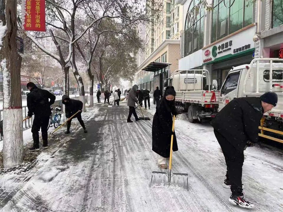 11月23日晚至24日,受冷空气影响,张掖市迎来大范围降雪天气,道路出现积雪结冰,给居民出行带来不便。全市广大干部职工“闻”雪而动,积极开展除雪保畅工作,确保道路交通顺畅、市民出行安全。