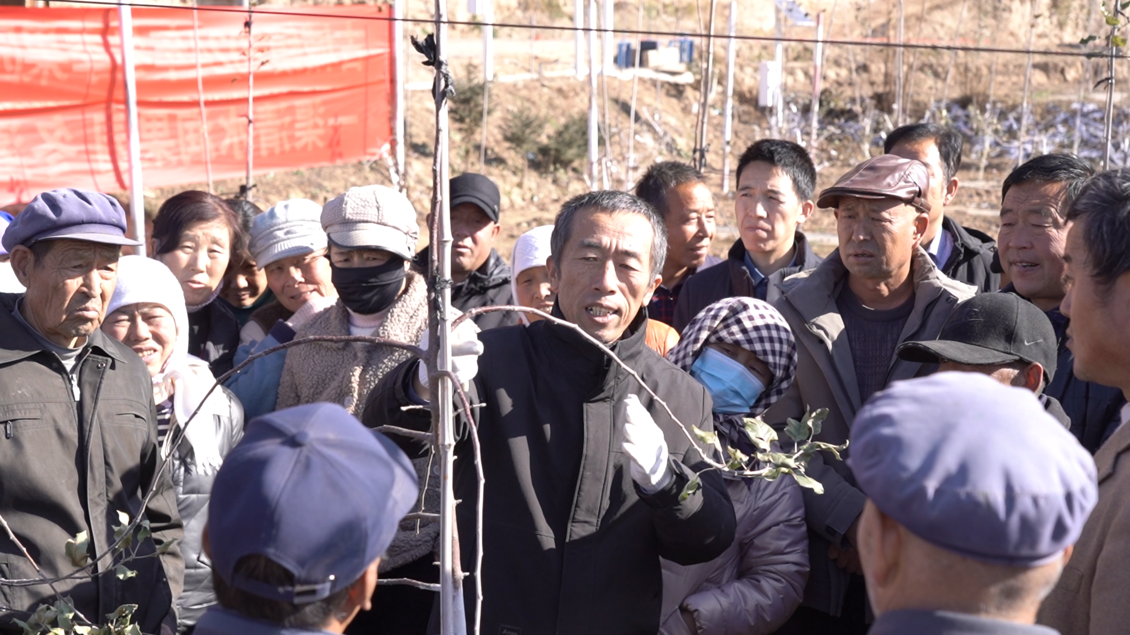 在开展冬灌作业的同时,为进一步提升果园管理水平,古城镇邀请了果树专家,为果农们开展果园管理培训。培训现场,专家围绕着冬季果树修剪、病虫害防治、土壤肥力保持等关键技术环节进行了详细讲解与实操示范,果农们认真聆听和学习。