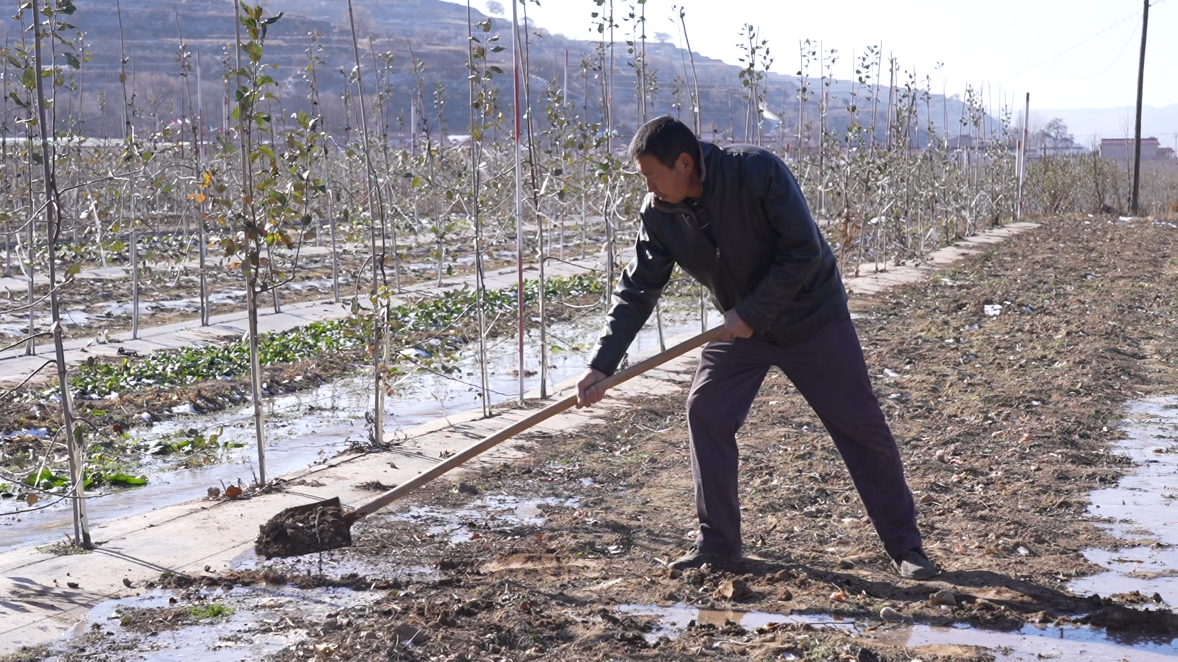 要想来年收成好,农田冬水得灌饱。在古城镇陈河村的田间地头,村民们正积极的在地头清理水渠的淤泥,准备引水灌地,开展冬灌作业。随着水闸开启,河道里的水缓缓地流入果园里,浸润着果树的根系。
