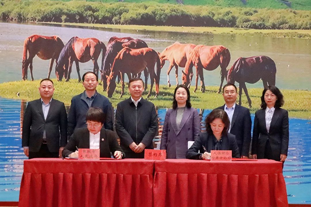 11月28日,张掖市委副书记、代理市长叶尔波力·孜汗与中国人民财产保险股份有限公司甘肃省分公司党委书记、总经理余素红一行座谈并签订战略合作协议。市政府副市长娄金华及秘书长杨育林和中国人民财产保险股份有限公司甘肃省分公司党委委员、副总经理董怡出席并见证签约。