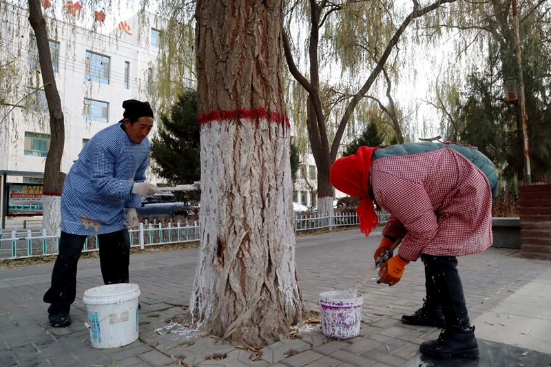 “通过给树木涂白,有效降低了树木的昼夜温差,防止树木冻害,还能杀死树皮裂缝中的虫卵,减轻来年树木病虫害的发生。目前已完成总工作量的30%,预计一周内可以完成全部工作。”临泽县城市园林绿化中心副主任徐克苦说。