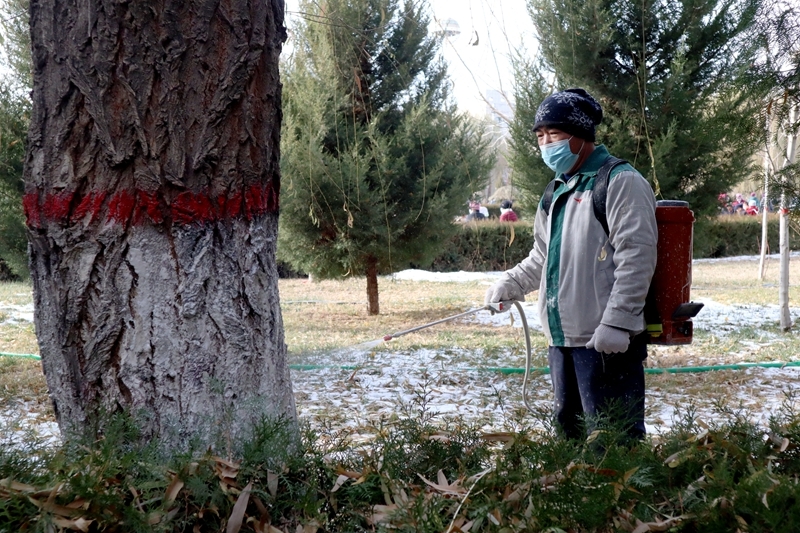 苗木种植“三分种,七分管,种是基础,管是关键”。自冬季园林绿化养护工作开展以来,临泽县城市园林绿化中心已累计组织养护工人600余人次,对城区6000余棵木进行涂白和修剪整形,对城区内约100万平方米的绿化带进行灌溉,进一步提高灌木抗寒、抗冻能力,确保灌木能够安全越冬。