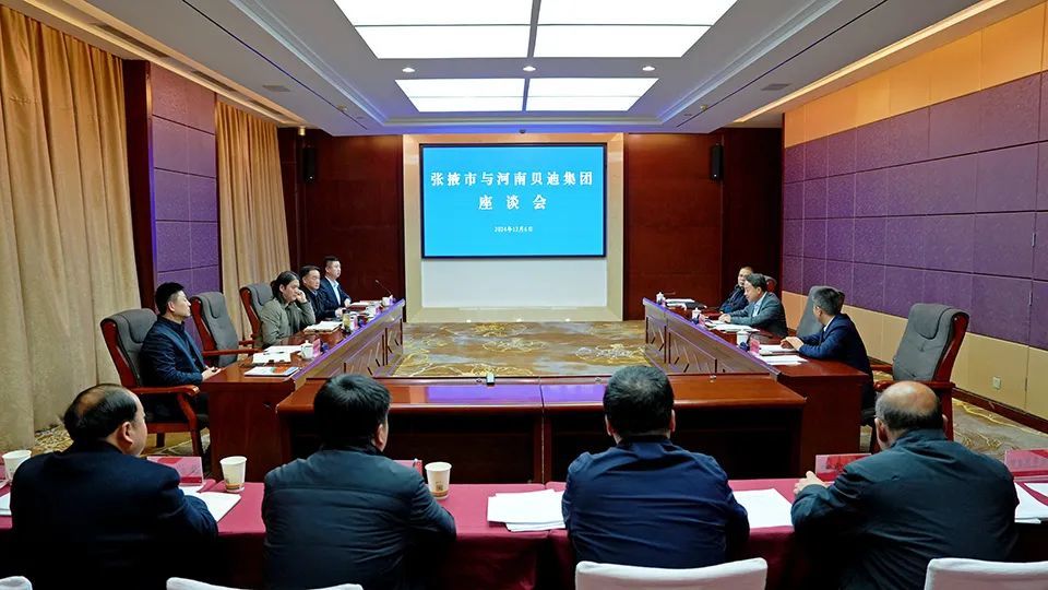 12月6日,张掖市与河南贝迪集团举行座谈会。张掖市委书记卢小亨主持并讲话,河南贝迪集团董事长王新民出席并讲话。副市长王韶华,河南贝迪集团董事长助理、特创生物董事长王金春,副总经理冯国武及甘州区、市直相关部门负责同志参加。