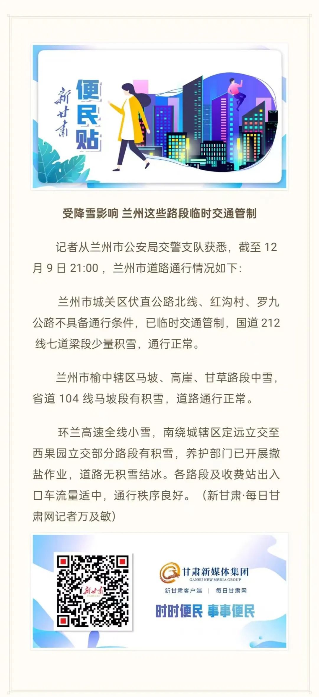 每日甘肃网官方公众号:受降雪影响,兰州这些路段临时交通管制