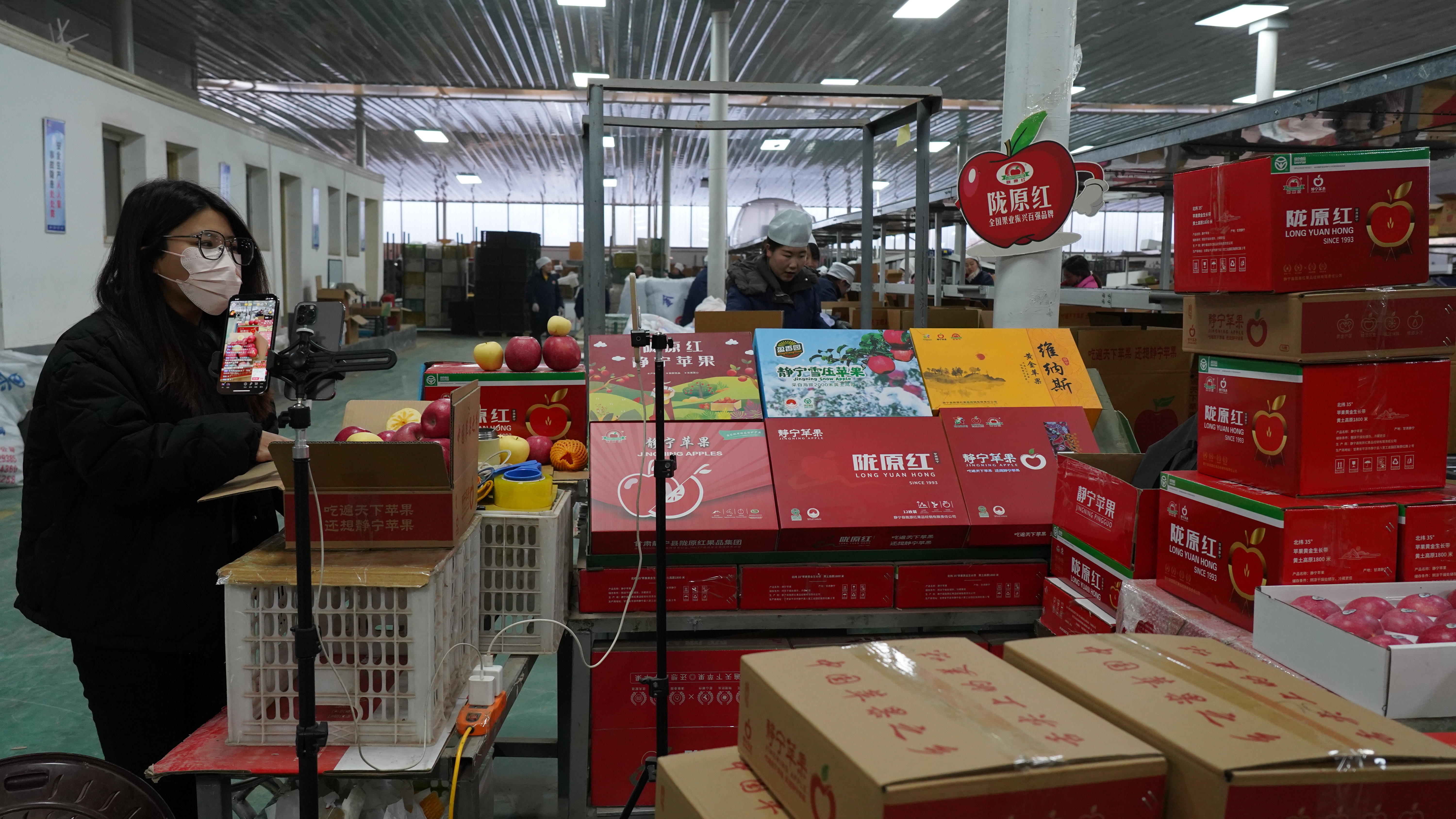 同时,为扩大销售渠道,完善销售模式,该公司还在车间开设直播间,通过边包装边介绍的实时直播方式,让客户更直观的看到静宁苹果的分拣包装过程,通过工作人员现场介绍,让客户选择更多样,买得更放心,吃得更安心。