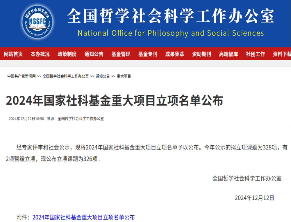 12月12日,全国哲学社会科学工作办公室公布了2024年度国家社科基金重大项目立项名单,兰州大学管理学院王学军教授担任首席专家的项目《发展新质生产力的政府职能研究》和历史文化学院李静教授担任首席专家的项目《铸牢中华民族共同体意识的前沿问题研究》获准立项。