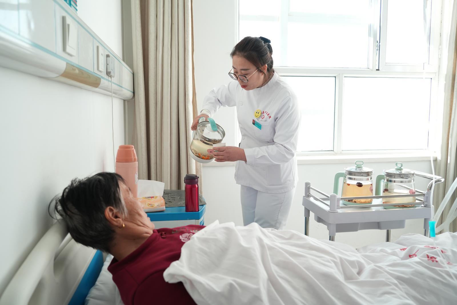 “护士每天都给我们倒送养生茶,我们喝了以后,感觉非常好。虽然天气寒冷,但是我们心里非常暖和。”住院病患张志勤高兴地说。