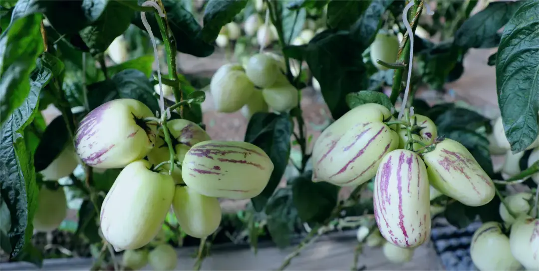 该棚主要种植“桃心2号”人参果品种。这种人参果口感独特,水分充足,甜度适宜。其富含的多种维生素和微量元素,对于患有高血压、糖尿病的老年人而言,具有调节身体机能、提高免疫力的显著功效,因而在市场上备受欢迎。