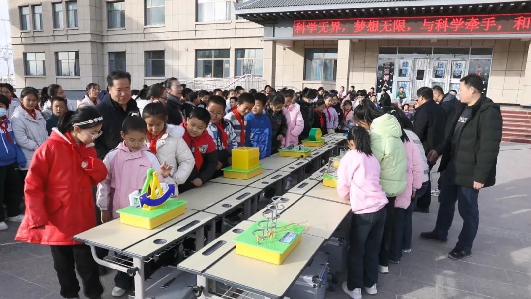 在瓜州县广至藏族乡中心小学,流动科技展览馆展示了“双曲狭缝”“电磁加速器”“链条传动”等科普仪器,内容涉及到物理学、光学、数学、电磁技术等多门学科知识,吸引学生们主动观察、思考、讨论,近距离感受科技的魅力,体验科技带来的乐趣。