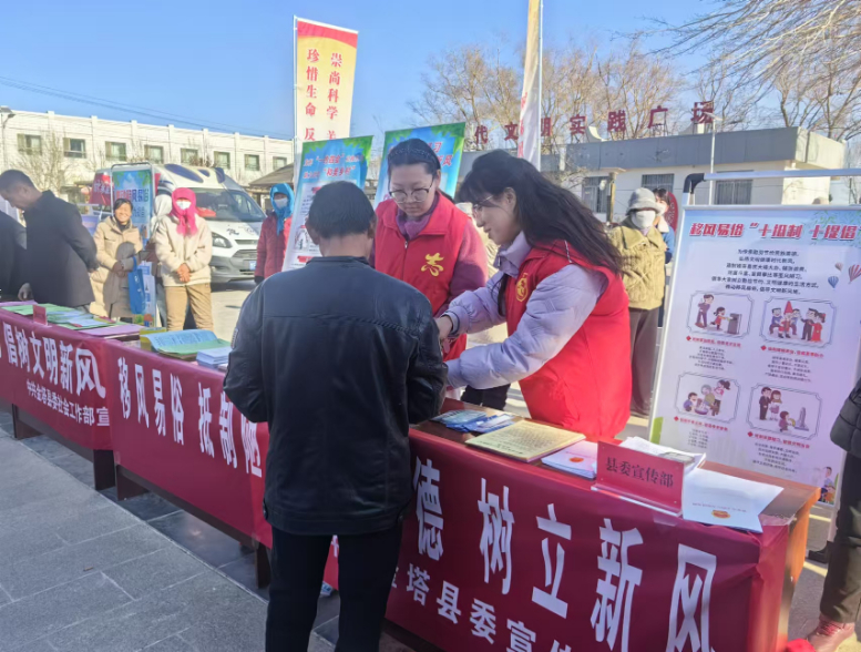 今年以来,金塔县以社会主义核心价值观为引领,把深化移风易俗作为乡村振兴的重要抓手,创新工作方式方法,以各乡镇“赶集日”为契机,整合各类新时代文明实践资源,组织全县各级新时代文明实践志愿服务队伍开展“赶文明大集 送文化下乡”活动,持续将“文明新风”融入乡村集市,推动移风易俗工作落到实处、取得实效。