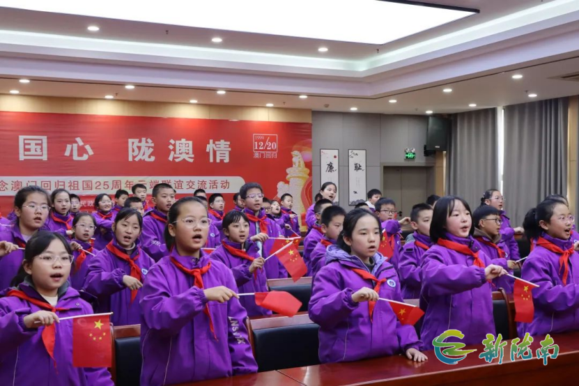 新陇南讯(记者 尚敏贤)为庆祝澳门回归25周年,加强甘肃与澳门两地之间的文化交流与情感联系,增进两地人民的相互了解和友谊,共同弘扬中华优秀传统文化,展现两地在“一国两制”方针下的繁荣发展新貌,激发两地同胞的爱国情怀和民族自豪感。近日,陇南市实验小学联合澳门劳校中学举行了“中国心 陇澳情”庆祝澳门回归祖国25周年云端联谊活动。