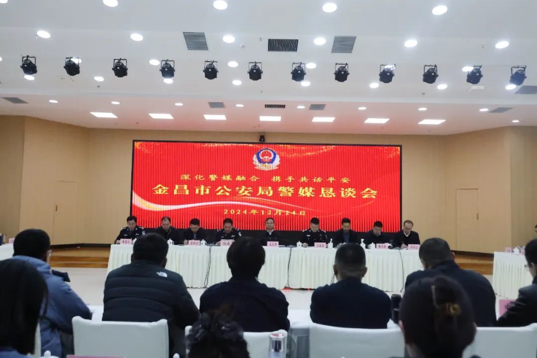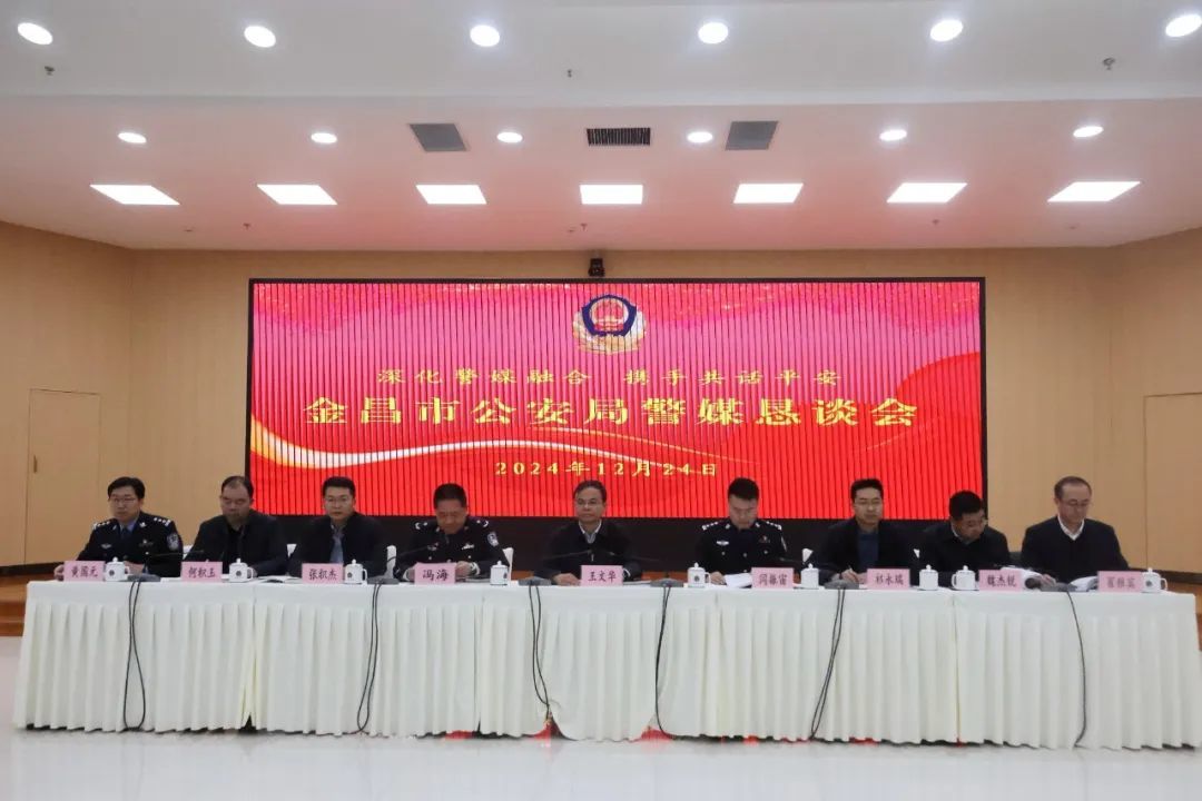 为进一步加强警媒交流协作,巩固和发展良好的警媒合作关系,积极宣传金昌公安工作成效,发好公安声音、讲好警察故事、树好队伍形象,全面提升金昌公安新闻宣传能力水平,12月24日,金昌市公安局组织召开警媒恳谈会,邀请中央广播电视总台甘肃总站、新华社甘肃分社、法治日报社甘肃记者站、甘肃日报社等中央、省、市级18家媒体代表参加座谈。副市长、市公安局党委书记、局长王文华参加会议并讲话。省公安厅政治部宣传处副处长、公安部新闻传媒中心甘肃记者站站长闫振宙及市委政法委、市委宣传部、市委网信办、市融媒体中心、市文联等部门领导到会指导。