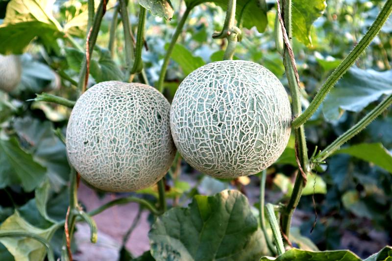 与此同时,在新华镇胜利村村民白文喜家的设施大棚,棚内温暖湿润,翠绿的瓜藤上挂满了沉甸甸的伯格甜瓜,个个饱满圆润、瓜型匀称、网纹清晰、色泽鲜亮,犹如小灯笼般挂在藤蔓上,长势喜人。