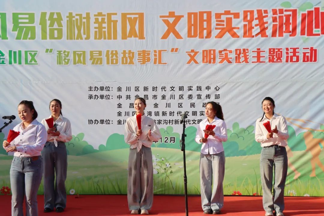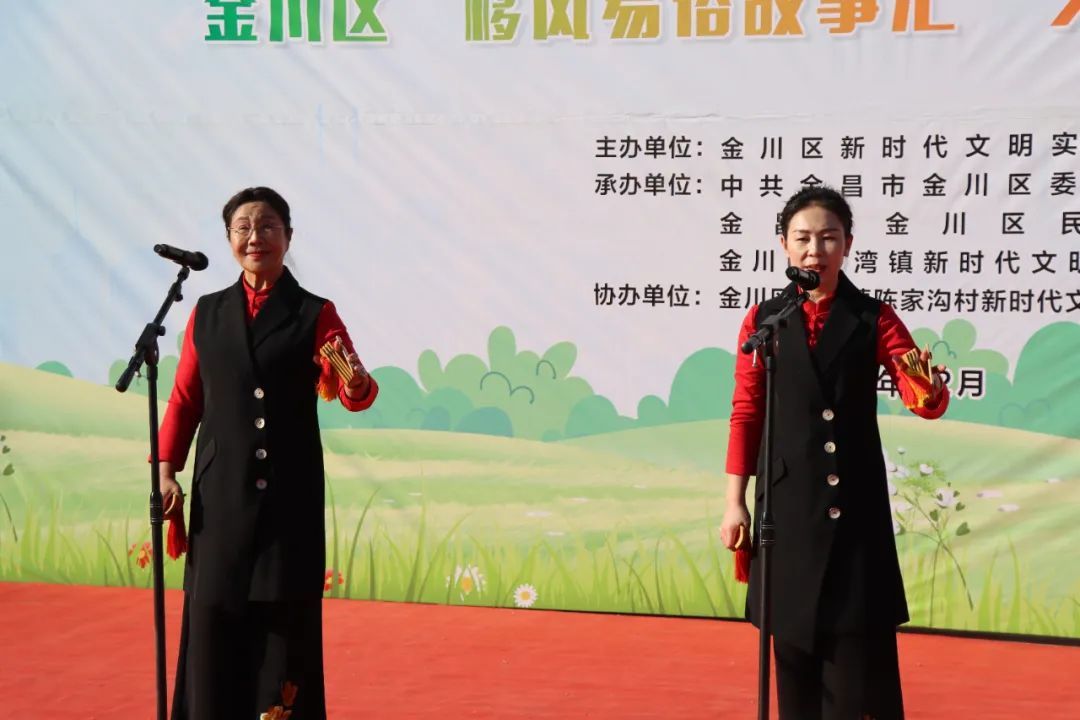 此外,“‘移风易俗’书记说”环节也为活动增添了不少亮点。陈家沟村、龙寨村、古城村新时代文明实践站站长结合本村实践成果分享经验做法,深刻阐述了移风易俗的重要性和意义,号召广大村民积极行动起来,共同为创建文明、和谐、美丽的乡村环境贡献力量。同时,金川区新时代文明实践志愿服务总队志愿者通过接地气、冒热气的宣讲,不断深化群众对移风易俗的认识和理解。