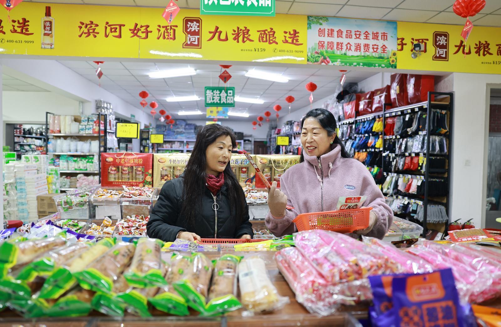 村民们告诉记者,以前买东西的时候,除了在附近的商店购买,就只能等赶集,还非常不方便。自从家门口有了商贸中心,随时都能买到新鲜蔬菜水果,种类丰富、价格便宜,品质也有保障。