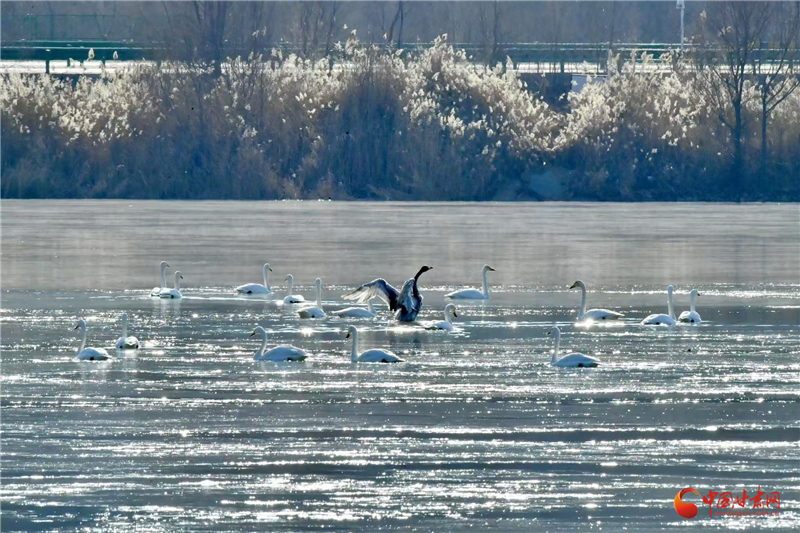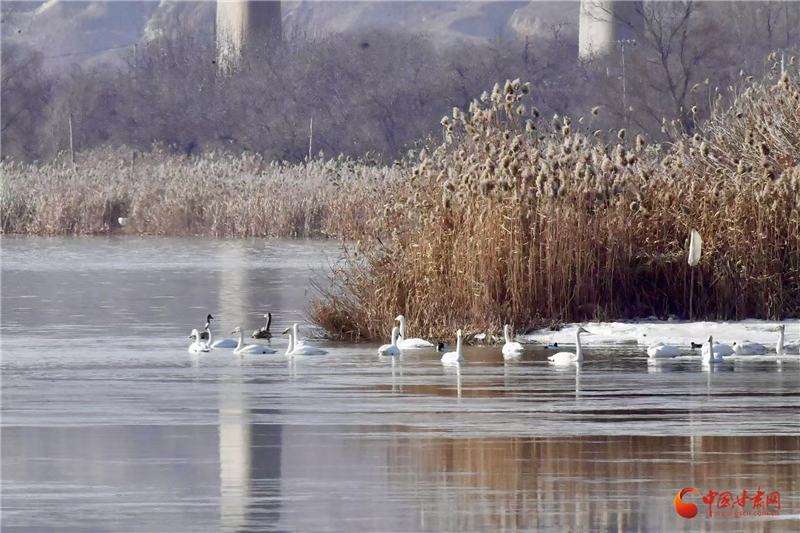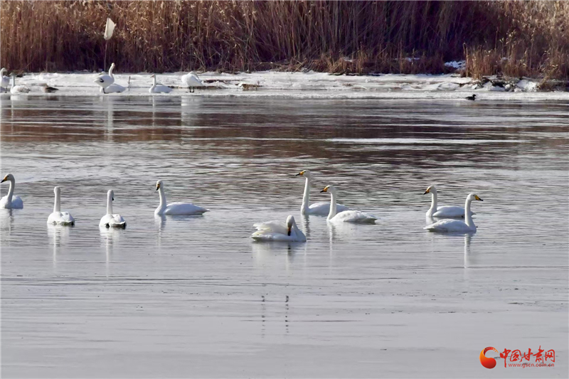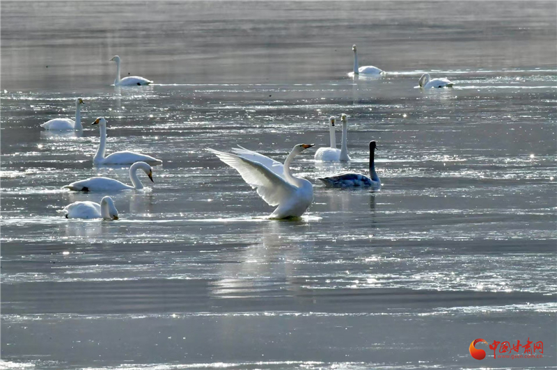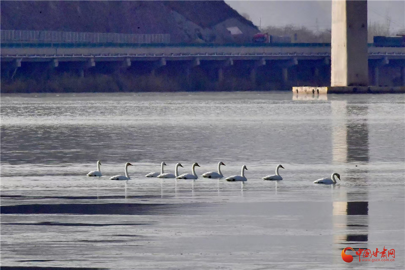 中国甘肃网12月27日讯(西北角·中国甘肃网记者 王烁)初冬时节,兰州市西固区达川镇三江口天鹅滩再次迎来了来自西伯利亚的野生白天鹅。它们每年从11月初开始,陆续飞抵甘肃省境内,第二年3月中旬才会离去。这群优雅的白色“精灵”凭借本能与对“家”的向往,如约飞来越冬,为兰州的冬日增添了一份生机与浪漫。
