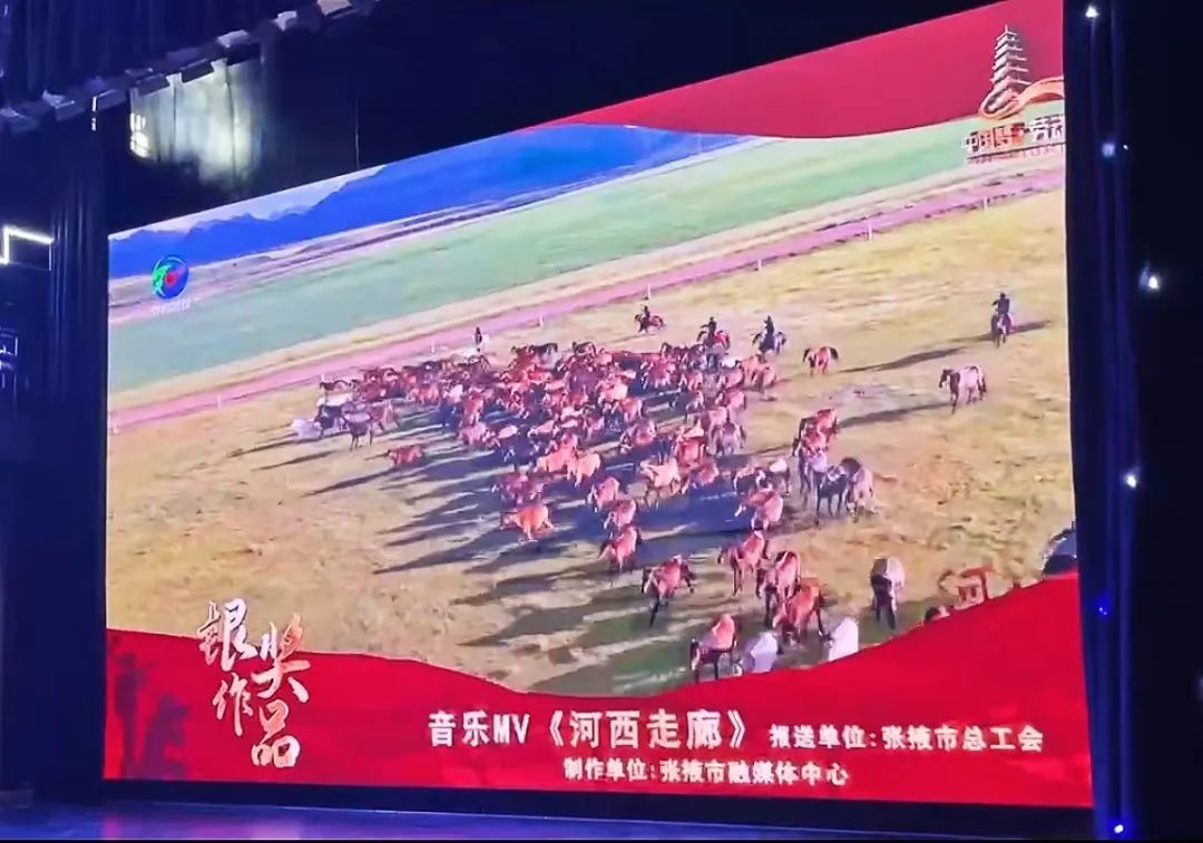 获得银奖的音乐MV《河西走廊》由张掖市融媒体中心摄制,是一部高校、民间、主流媒体合作推出的作品,先后在张掖七彩丹霞、大佛寺、湿地公园等地取景,以交响乐团优美的旋律,歌唱家声情并茂的演唱、美不胜收的景色和恢宏的历史气息,共同描绘出河西走廊迷人的画卷,该作品也被选入《中国当代音乐家优秀音乐CD选集》,由中国数字文化集团有限公司出版发行,并在《学习强国》甘肃学习平台“陇原试听(百灵·炫)”栏目推送。
