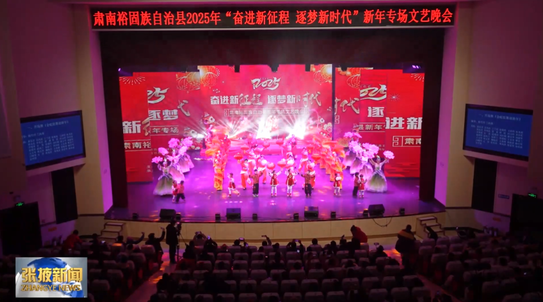 肃南县2025年“奋进新征程 逐梦新时代”新年专场文艺晚会在县影剧院精彩上演。晚会中,非遗展演《草原上的歌》巧妙地将裕固族原生态文化搬上舞台,描绘了裕固儿女多姿多彩的生活画卷。
