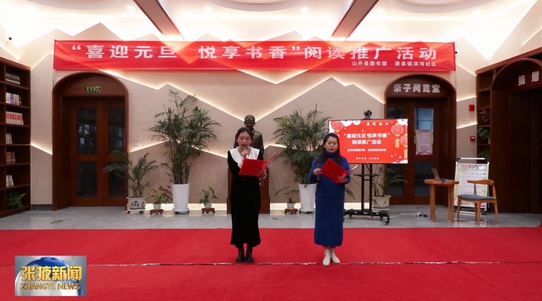 山丹县举办“喜迎元旦·悦享书香”阅读推广活动。伴随着音乐,朗诵者们或铿锵有力、慷慨激昂歌颂伟大祖国,或低沉顿挫、情意绵长地吟诵古诗词、现代诗歌。